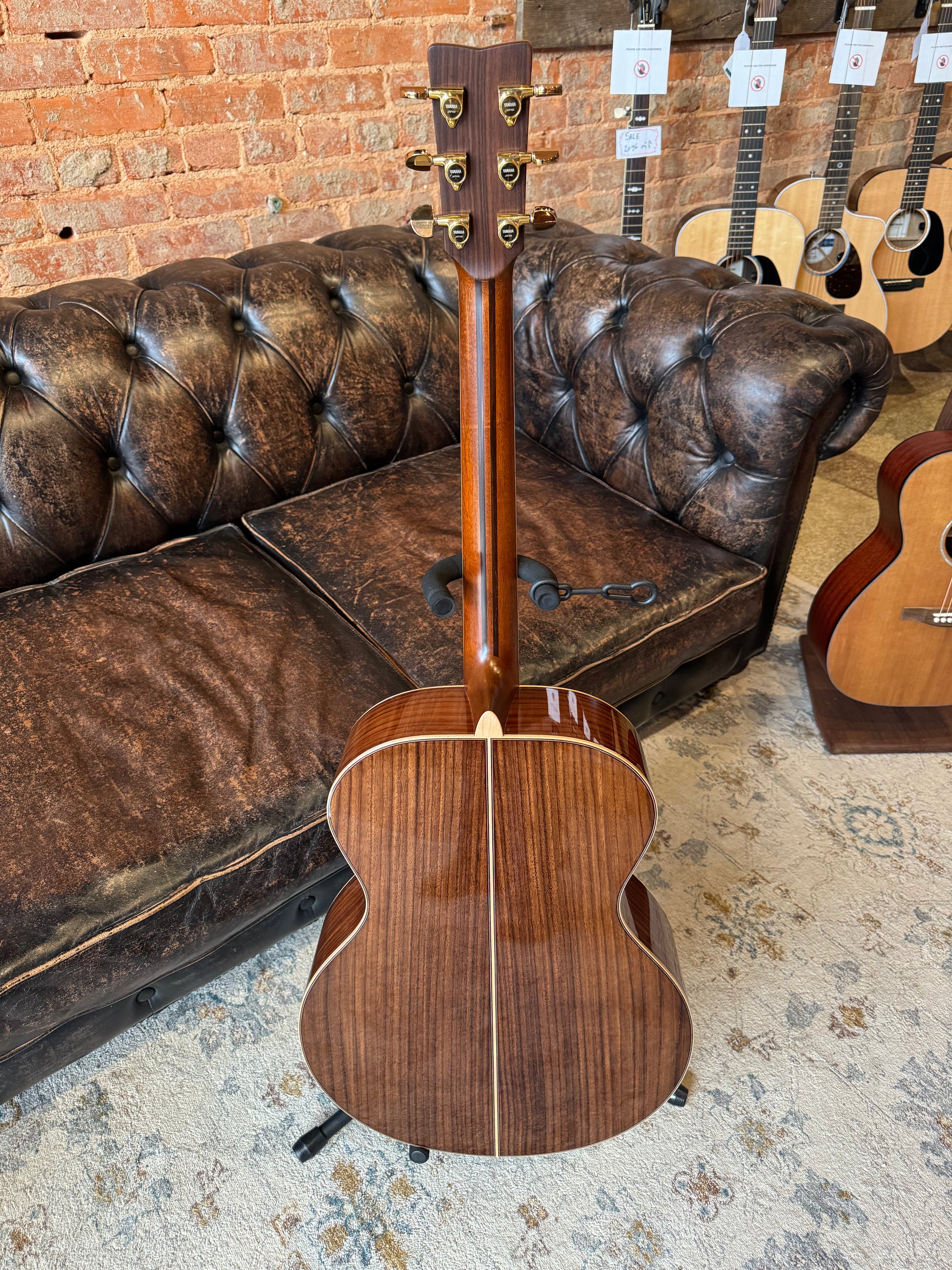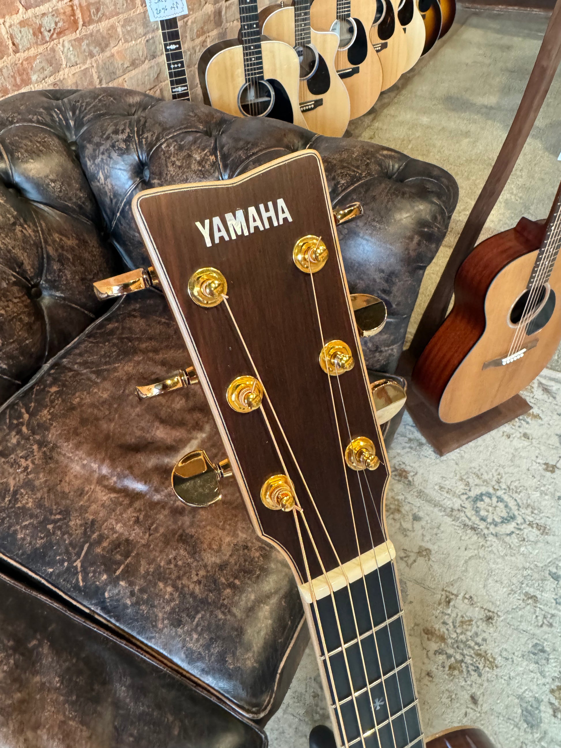 This isn't your granpaw's old Yamaha... These are from their high-end line in Japan, and this one does not disappoint in the slightest! Strum it, finger pick it, flat pick it, it can handle it all! Engleman Spruce Top with Indian Rosewood back and sides. These are four grand new and this one is in mint condition, has a K&K pickup and comes with a really beautiful Yamaha case as well. Come check it out before it's gone!